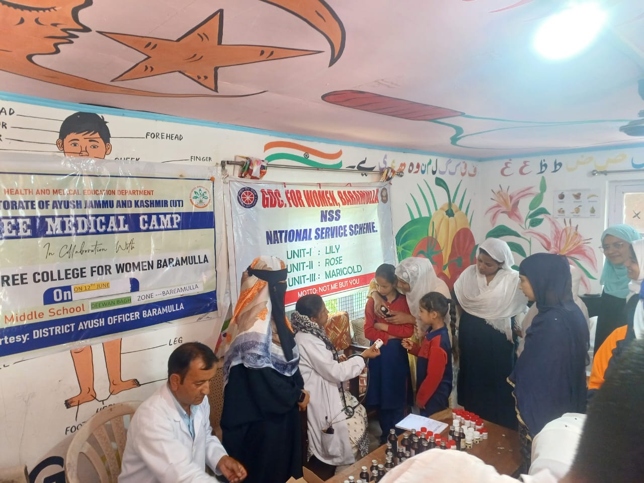 Free medical camp organized by NSS units at Govt Middle School Dewan Bagh Baramulla on 12th June 2025.